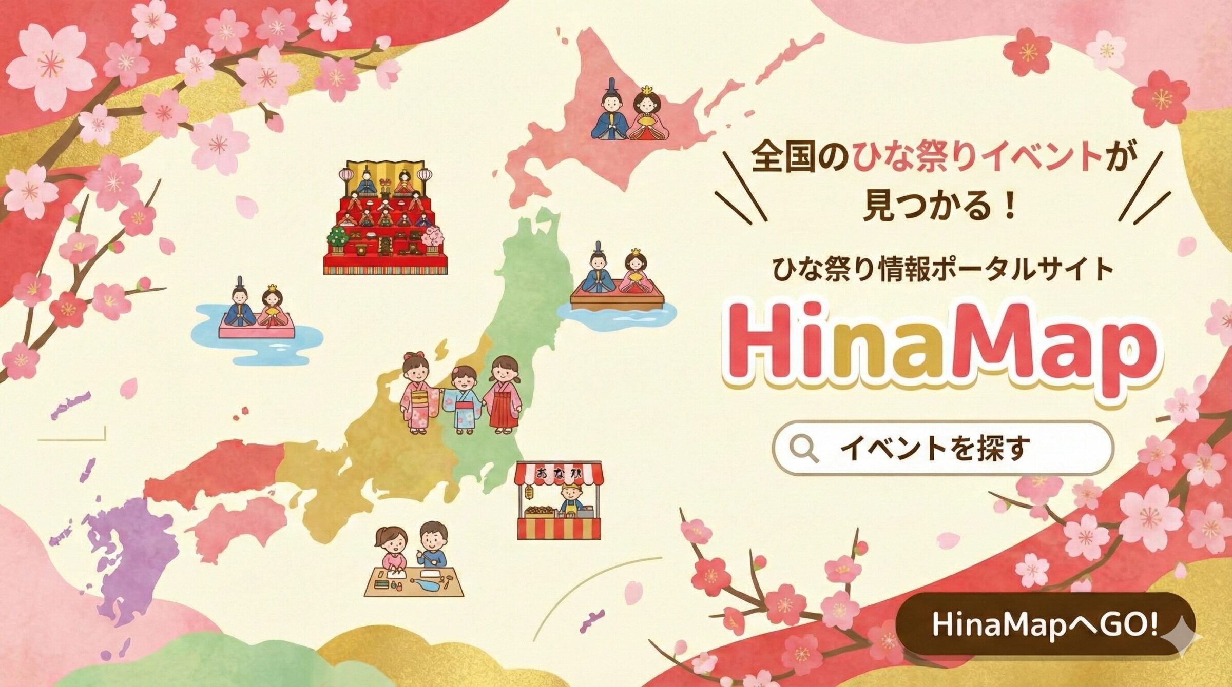 当店が運営するひな祭りイベント検索サイト「HinaMap」では、全国のひな祭りイベントを地図・地域別・カレンダーから簡単に検索できます。「今日行けるイベント」「今週末のイベント」もすぐに見つかりますので、ぜひお出かけの参考にしてみてください。